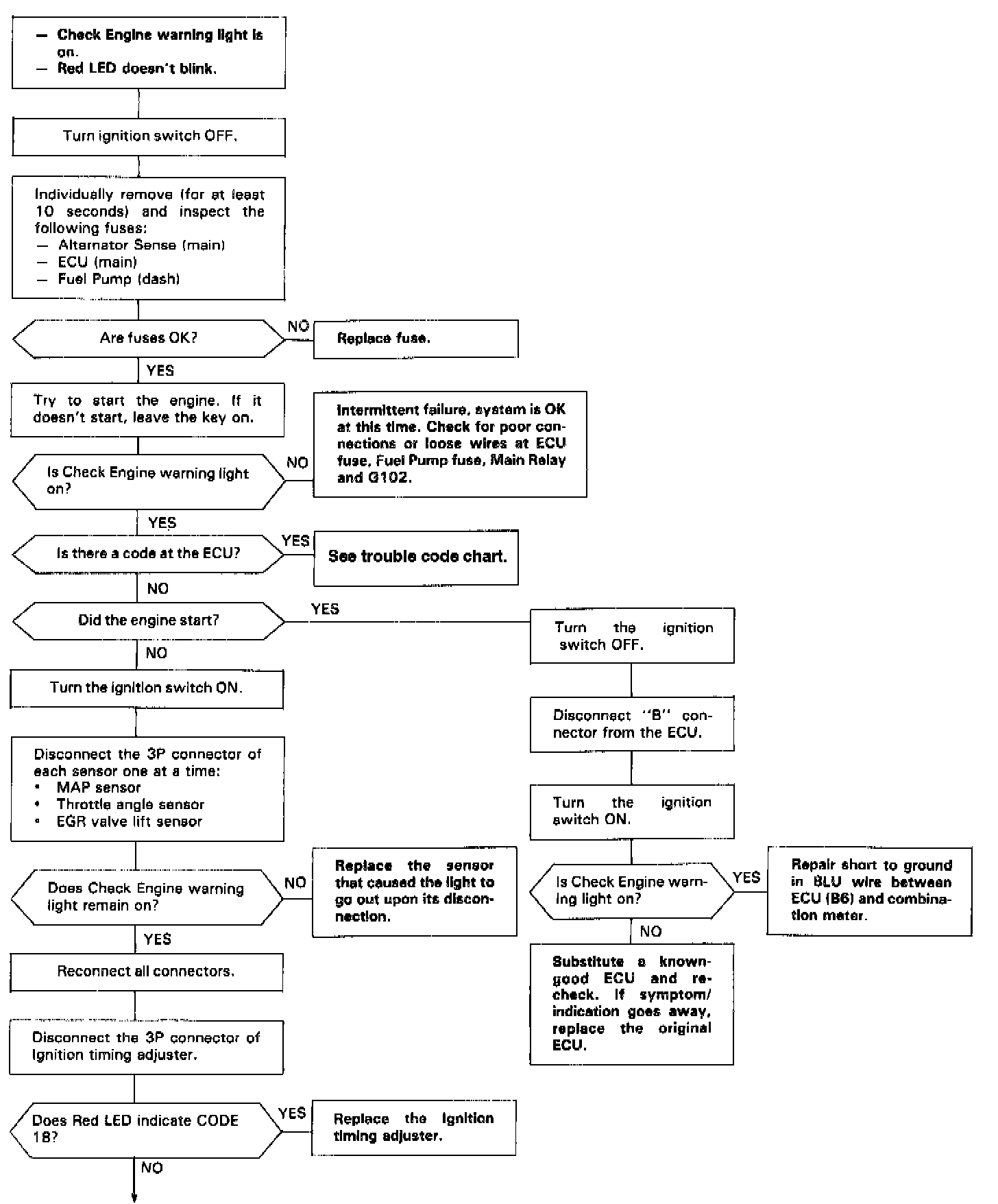Troubleshooting Flowchart - Check Engine Light ON, Red LED Doesn't Blink