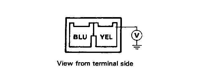 3. Connect a voltmeter between the YEL terminal (2-P connector A) and body ground. Is battery voltage available at the YEL terminal with the ignition switch ON.