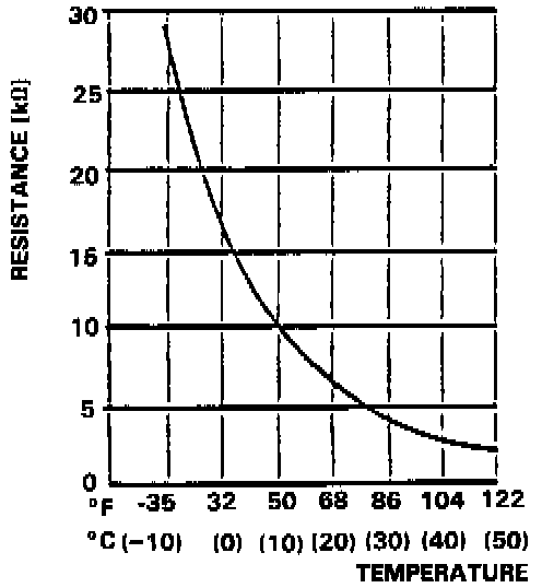The resistance reading between terminals of the in-car temperature sensor should match the specifications shown in the graph.