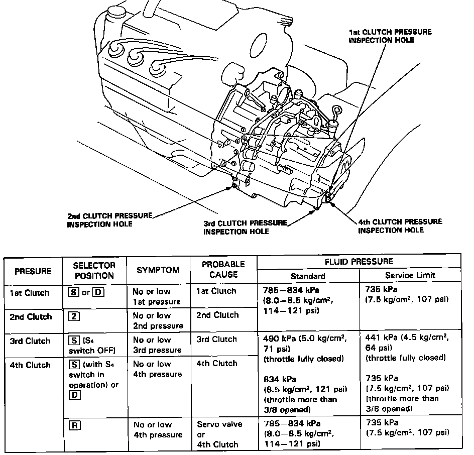 - Run the engine at idle speed to check 1st clutch only. Test stall speed in D or S if the 1st clutch pressure is low.