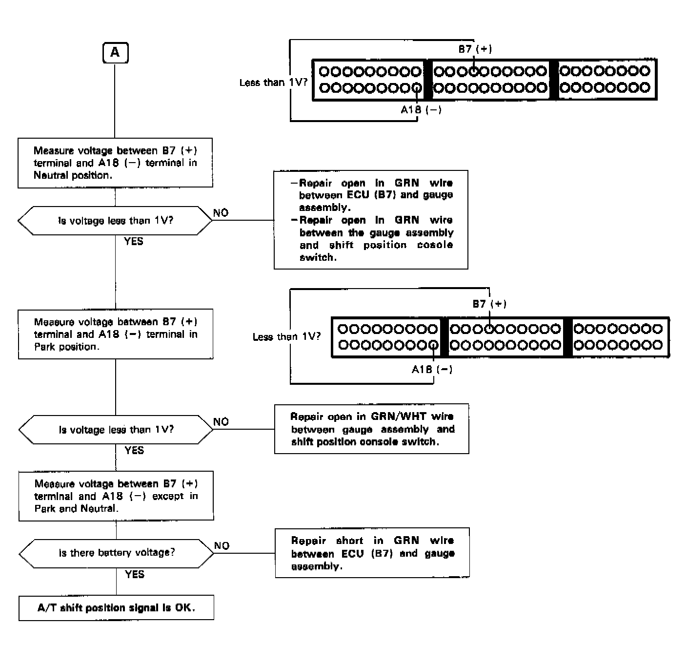 A/T SHIFT POSITION SIGNAL FLOW CHART