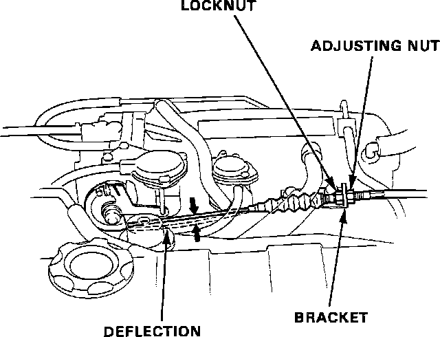 2. Check throttle cable deflection at the throttle linkage. Throttle cable deflection should be: