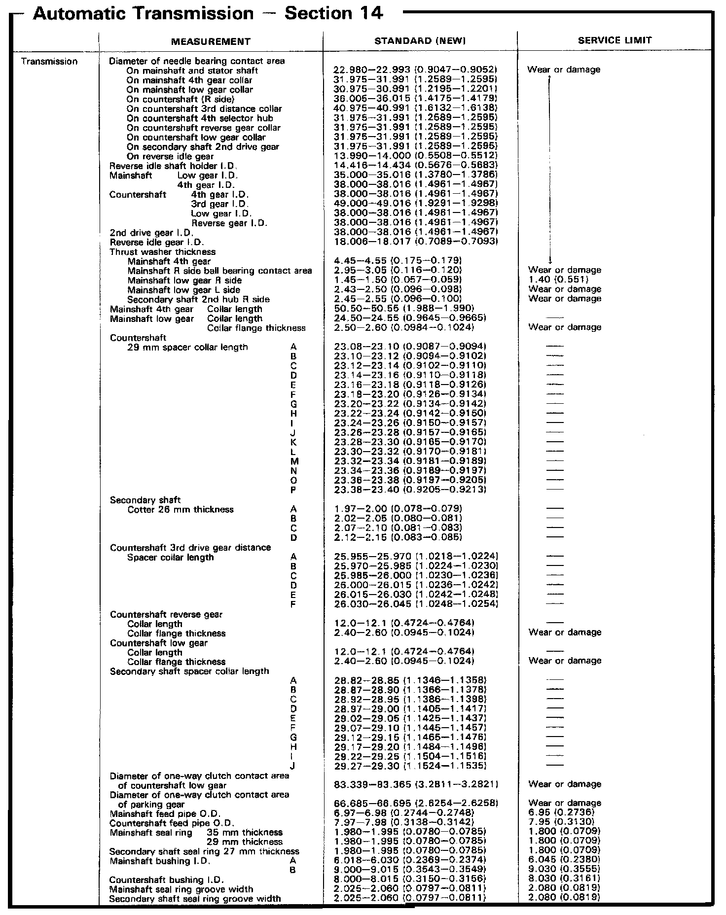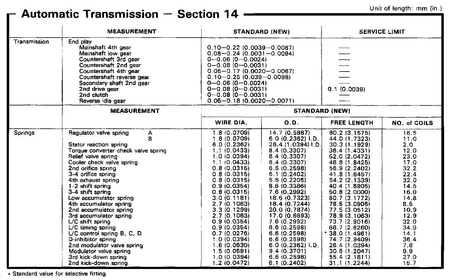 MPRA 4-spd A/T, Transmission End Play & Spring Measurements: