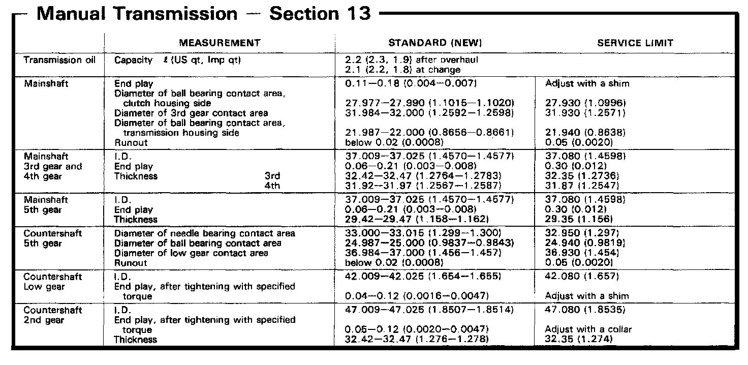 A1 5-spd M/T, Main & Counter Shaft End Play/Thickness:
