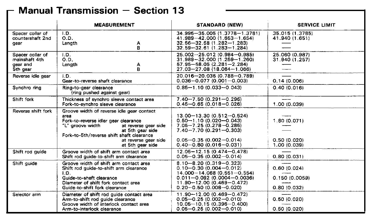 A1 5-spd M/T, Countershaft Gear/Reverse Measurements: