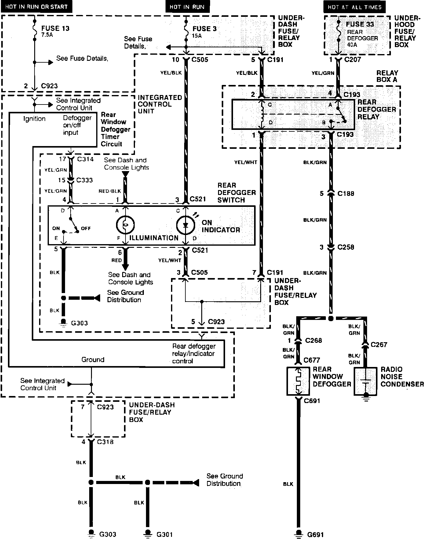 Integrated Control Unit: Rear Window Defogger, Seat Belt Beeper Timer Circuit: