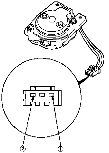 Connect battery power to the No. [1] terminal of the connector, and connect the No. [2] terminal to ground. The fan should run.