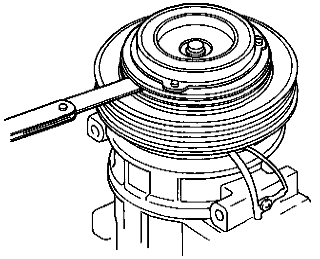 3. Measure the clearance between the pulley and pressure plate all the way around. If the clearance is not within specified limits, the pressure plate must be removed and shims added or removed as required, following the procedure on the next page.