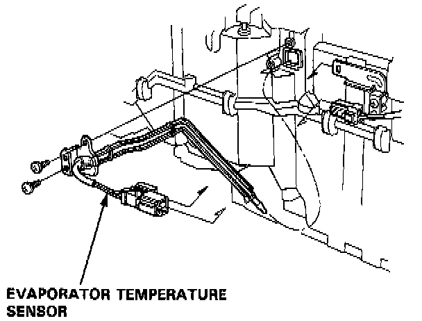 Disconnect the evaporator temperature sensor connector. Remove the sensor by removing the clips and screws.