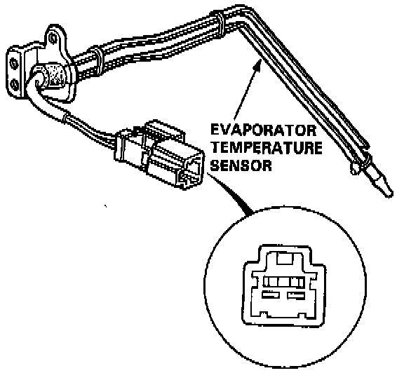 Compare the resistance reading between terminals of the evaporator temperature sensor with the specification shown in the graph: It should be within specification.