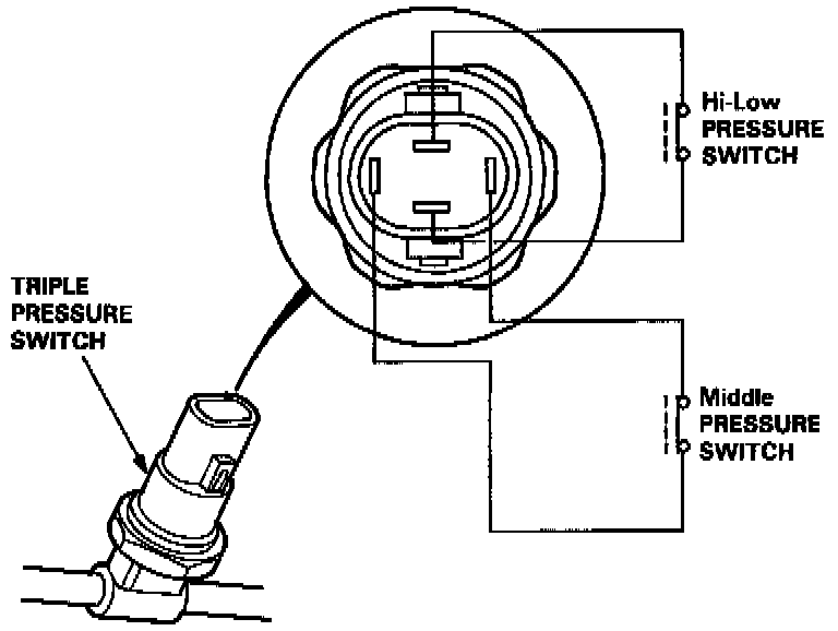 The triple pressure switch consists of a Hi-Low pressure switch and a middle pressure switch.