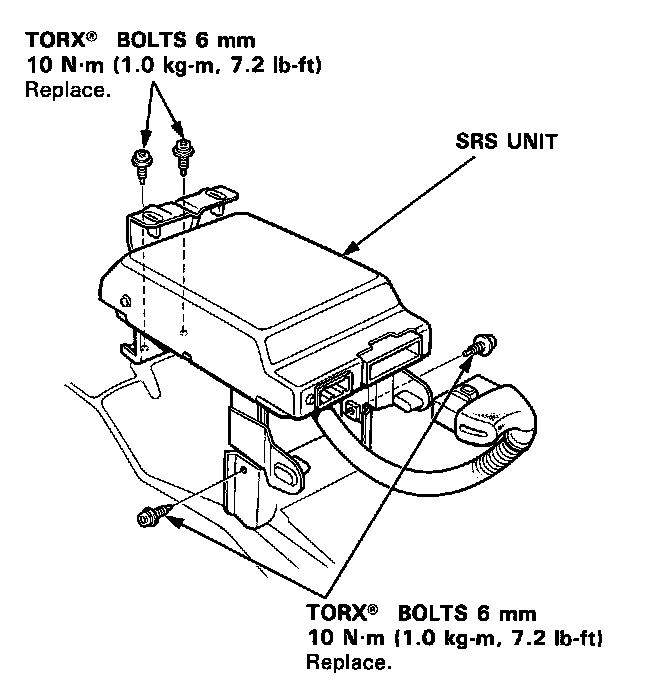 4. Remove the 4 SRS unit mounting bolts, then remove the SRS unit.