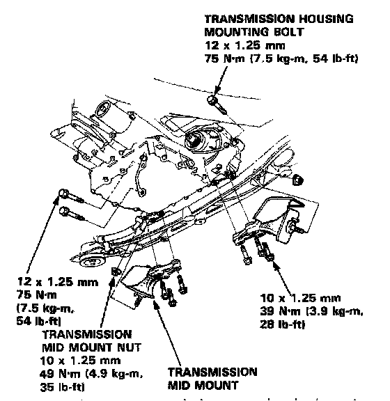 MPYA 4-spd A/T, Transmission Housing Mounting Bolts: