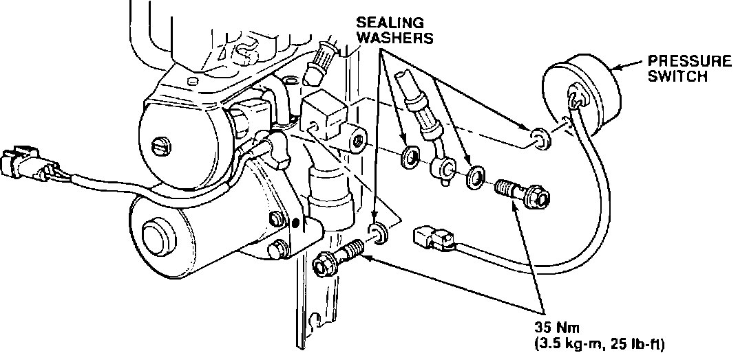 3. Remove the original pressure switch, and install the new switch using new sealing washers (see PARTS INFORMATION).
