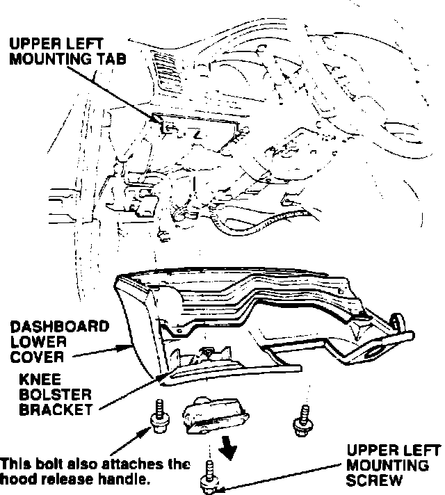 1. Remove the lower dashboard cover's two lower mounting screws.