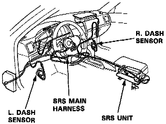 WARNING: All SRS wire harnesses and connectors are colored yellow. Do not use electrical test equipment on these circuits.