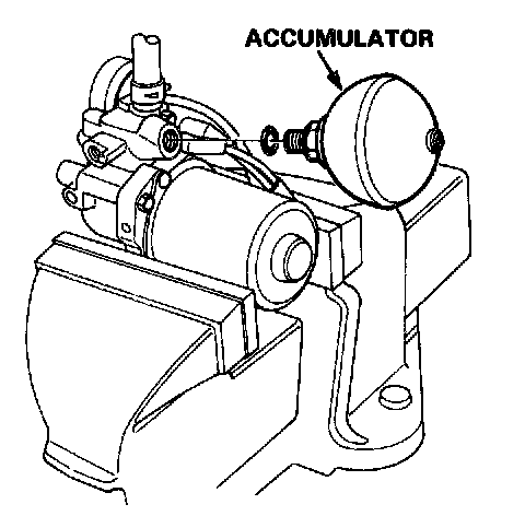 1. Secure the pump assembly in a vise and remove the accumulator by turning it counterclockwise with a open-end wrench.