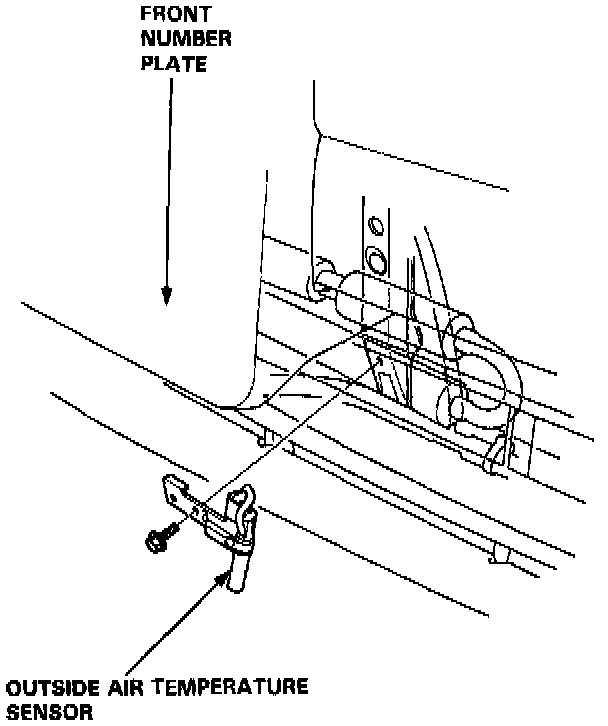 Remove the screw, disconnect the wire harness and then remove the outside temperature sensor. Be careful not to damage the front grille and front bumper.