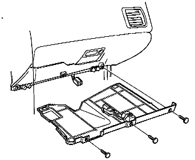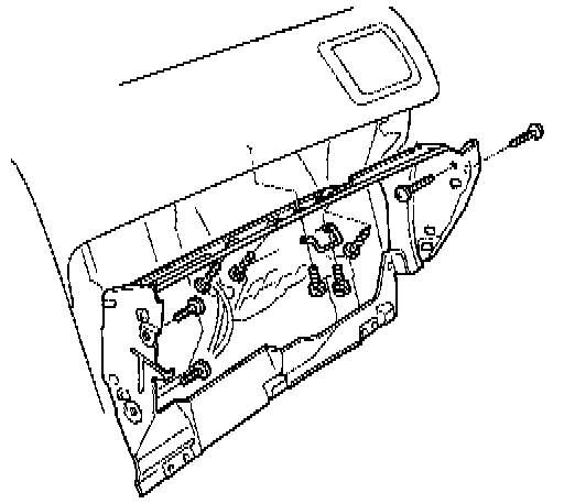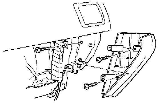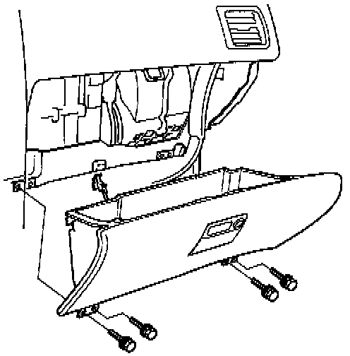 4. Remove the glove box frame mounting bolts and nuts, then remove the glove box frame.