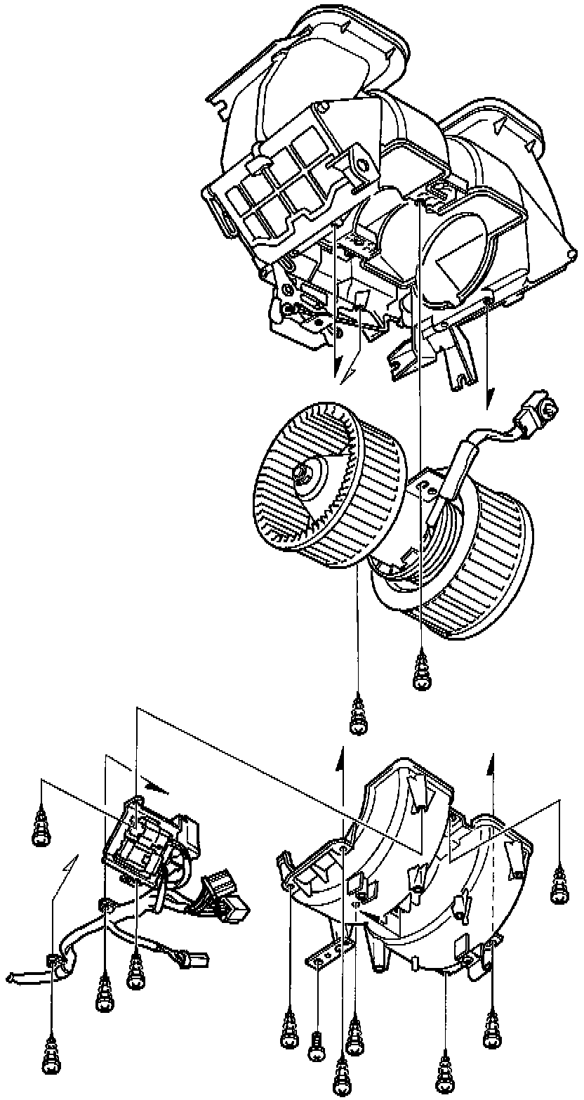 Refer to image for blower assembly overhaul and blower motor replacement.