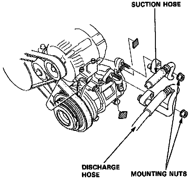 5. Disconnect the suction and discharge hoses from the compressor. Cap the open fitting immediately to keep moisture and dirt out of the system.