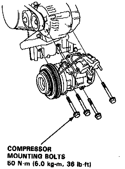 12. Adjust the compressor belt. After adjusting the belt, tighten the pulley center nut. Torque to 45 Nm (36 lb-ft) Then tighten the adjusting bolt securely.