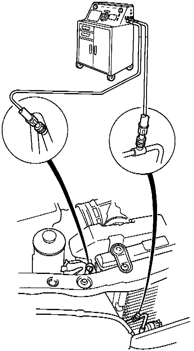 Attach an Air Conditioning Service Station as shown. Follow the equipment manufacturer's instructions.