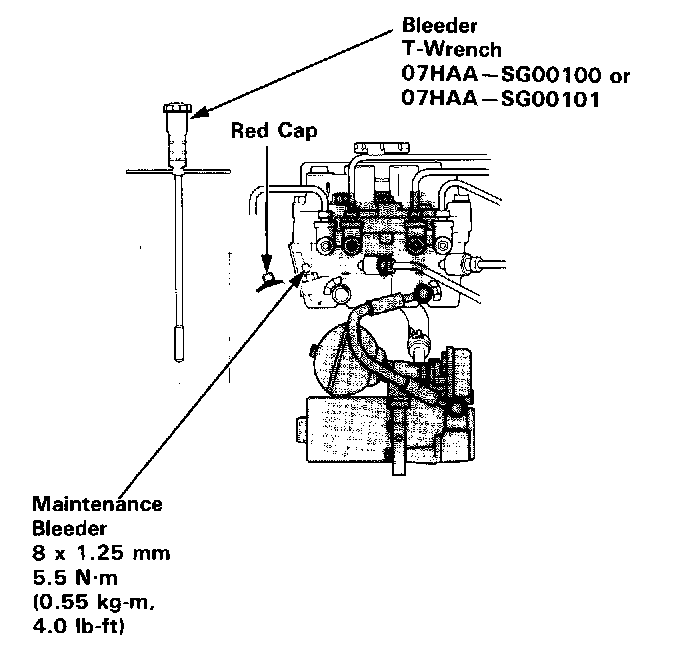 2. Bleed high-pressure fluid from the maintenance bleeder with the special tool.