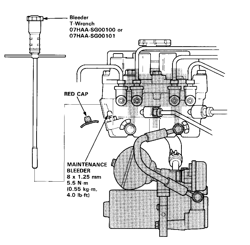 Use the Bleeder T-wrench before disassembling the parts shaded in the illustration.