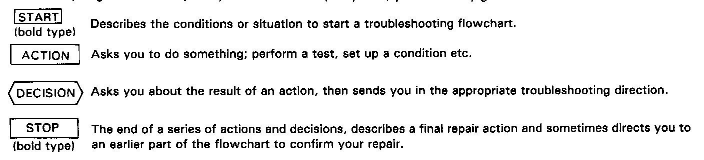 A flow chart is designed to be used from start to final repair. It's like a map showing you the shortest distance. But beware; if you go off the "map" anywhere but a "stop" symbol, you can easily get lost.