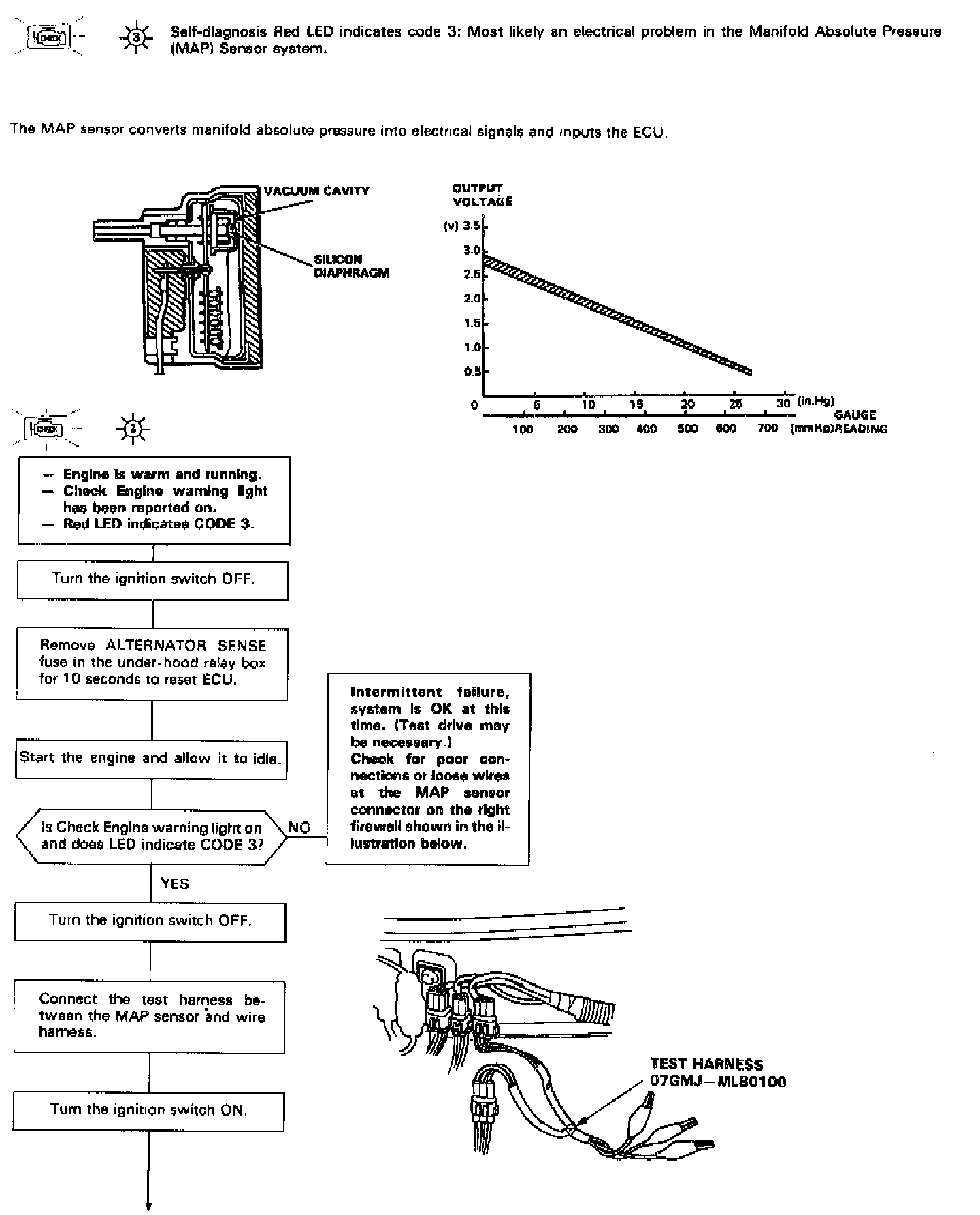 - If the electrical readings are not as specified when using the test harness, check the test harness connections before proceeding.