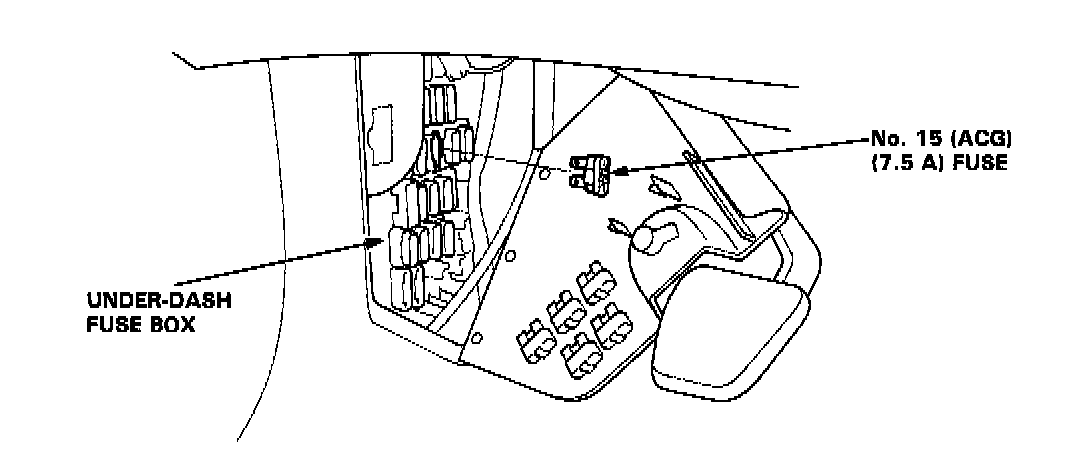 2. Remove the No. 15 (ACG) fuse (7.5 A) from the under-dash fuse box for 10 seconds to reset the ECU.