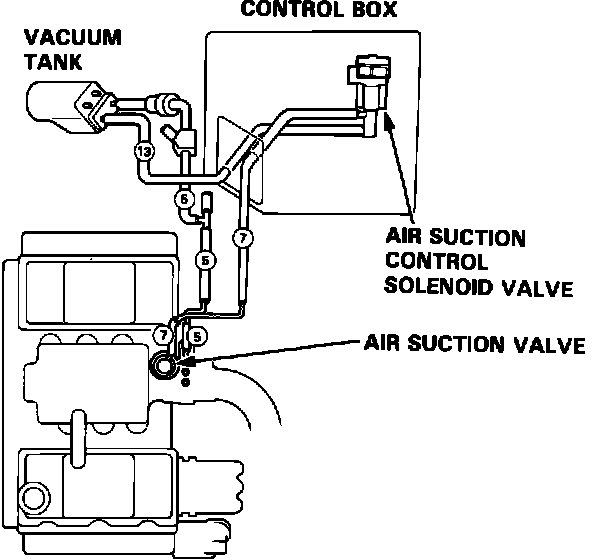 b. If there is no vacuum, go to air suction control solenoid valve test 1. SEE "COMPUTERIZED ENGINE CONTROLS"