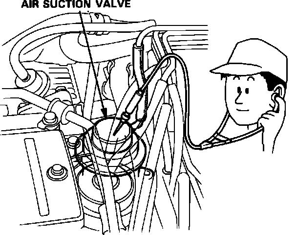 9. Check for air suction sound from the air suction valve at idle 15 seconds after start.