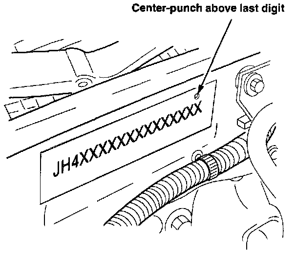 23. Center-punch a completion mark over the last digit of the engine compartment VIN.