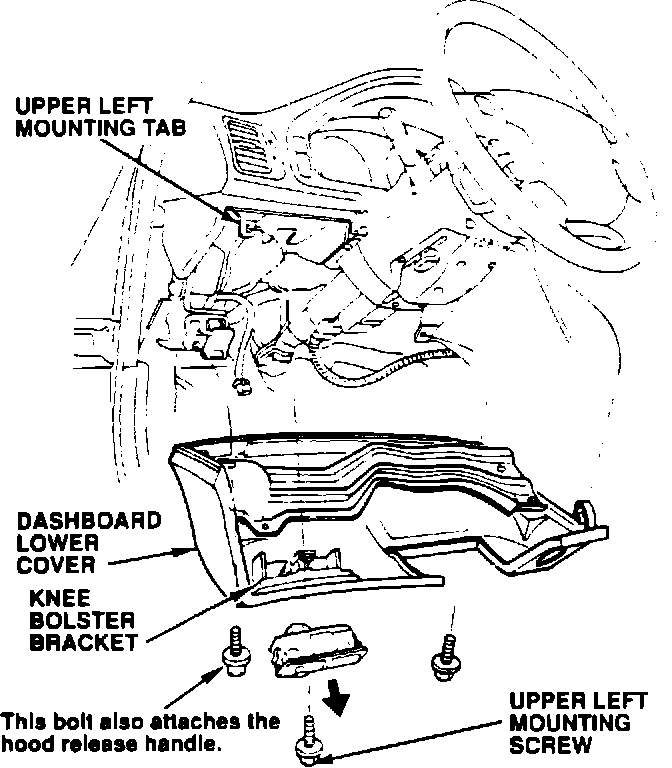 2. Remove the three lower dashboard cover mounting screws, then remove the cover.