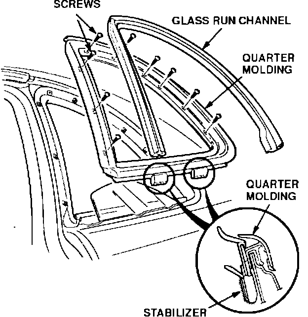 8. Reinstall the quarter window molding and the run channel. Run the window up and down to confirm proper operation and sealing.