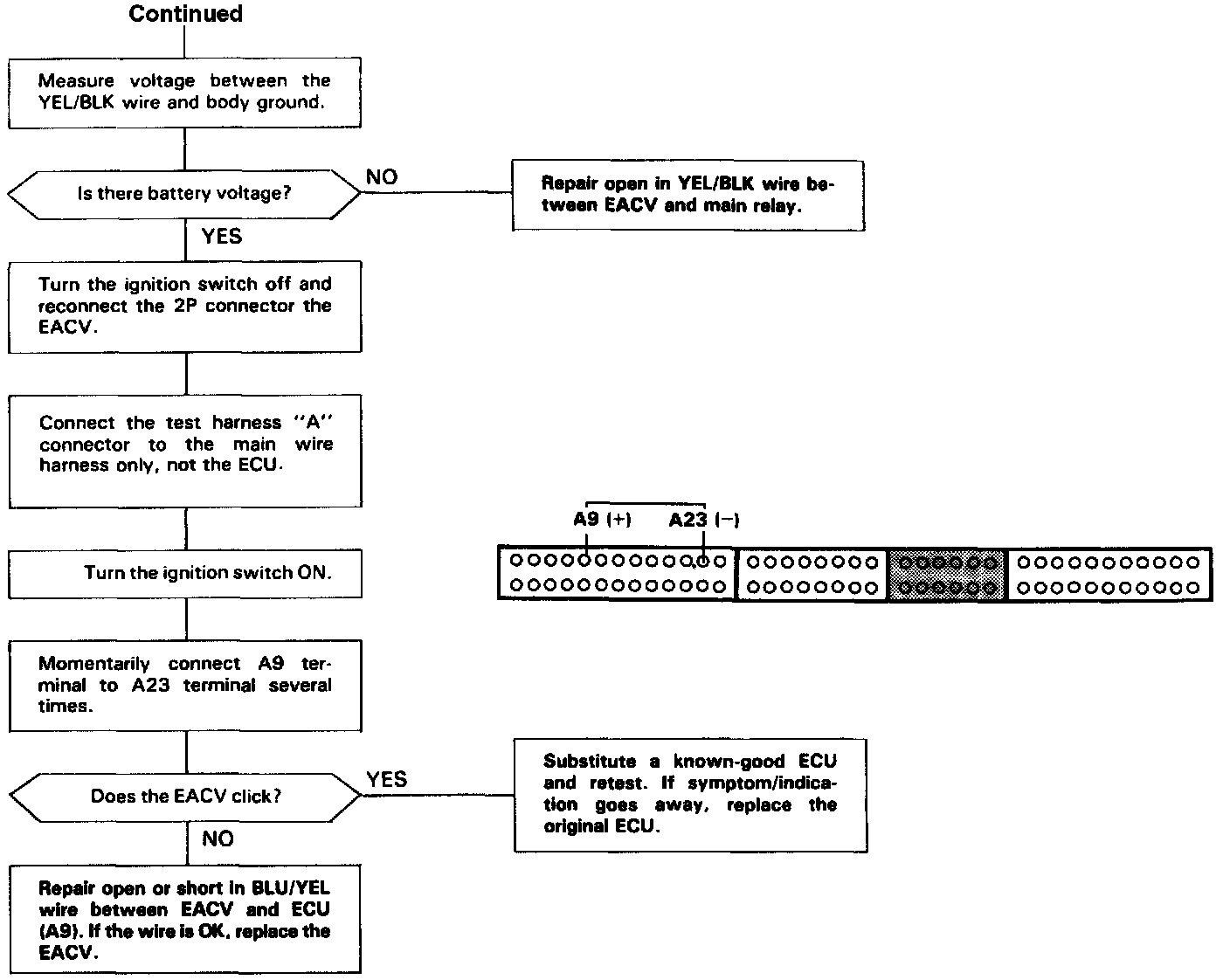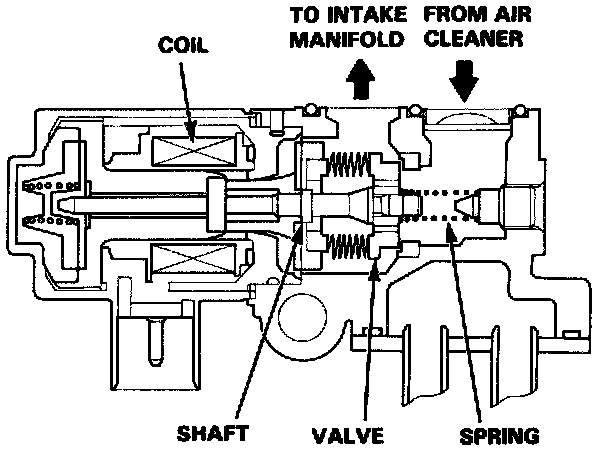 The EACV changes the amount of air bypassing the throttle body in response to a current signal from the ECU in order to maintain the proper idle speed.