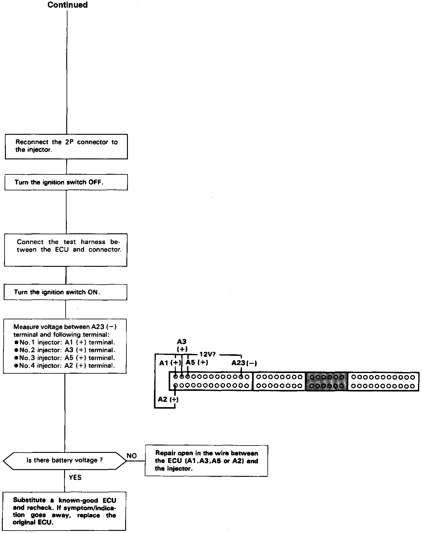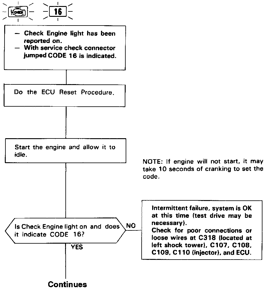 Self-diagnosis Check Engine light indicates code 16: A problem in the fuel injector circuit.