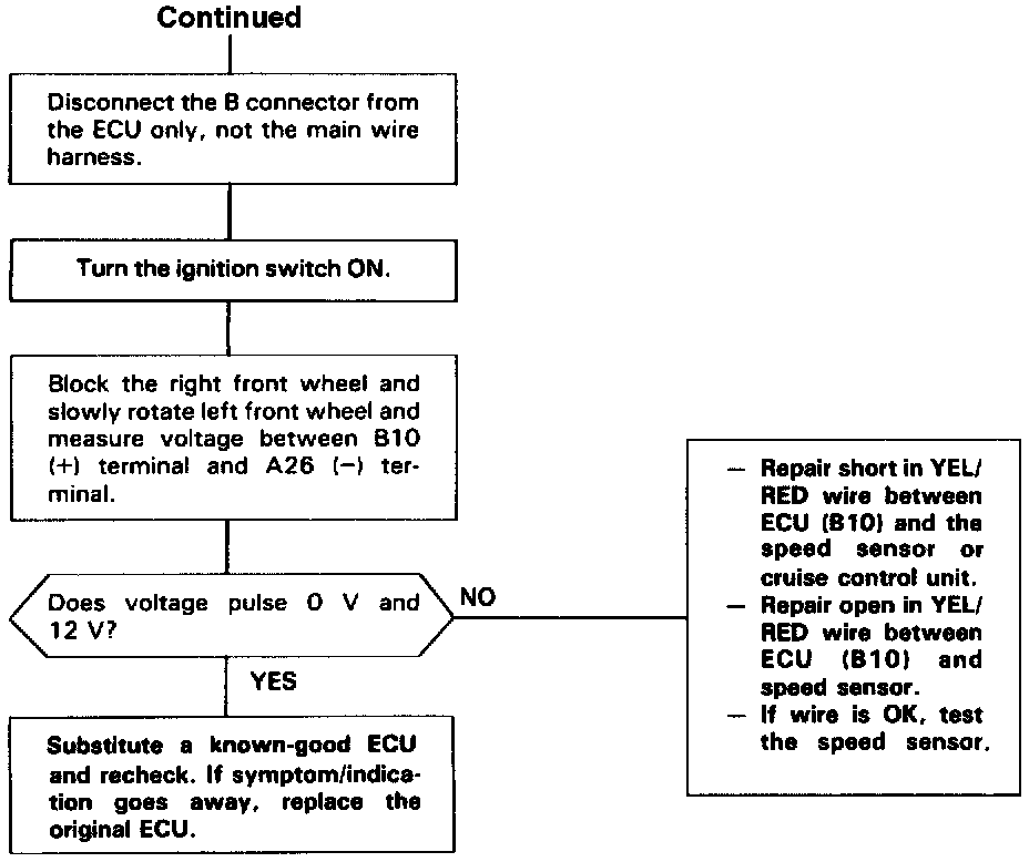 Self-diagnosis Check Engine light indicates code 17: A problem in the Vehicle Speed Sensor circuit