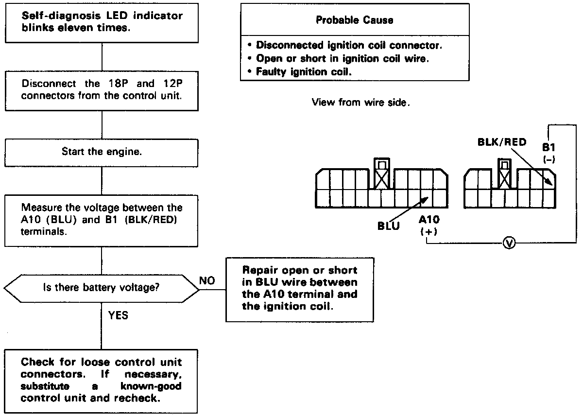 LED blinks eleven times: Inspection of Ignition Coil circuit