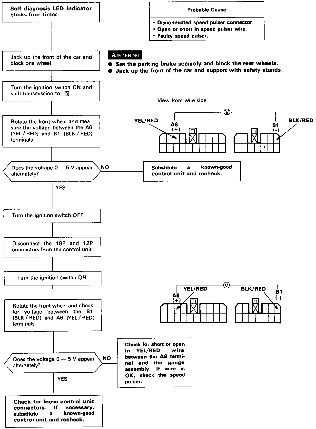 LED blinks four times: Inspection of Speed Pulser circuit