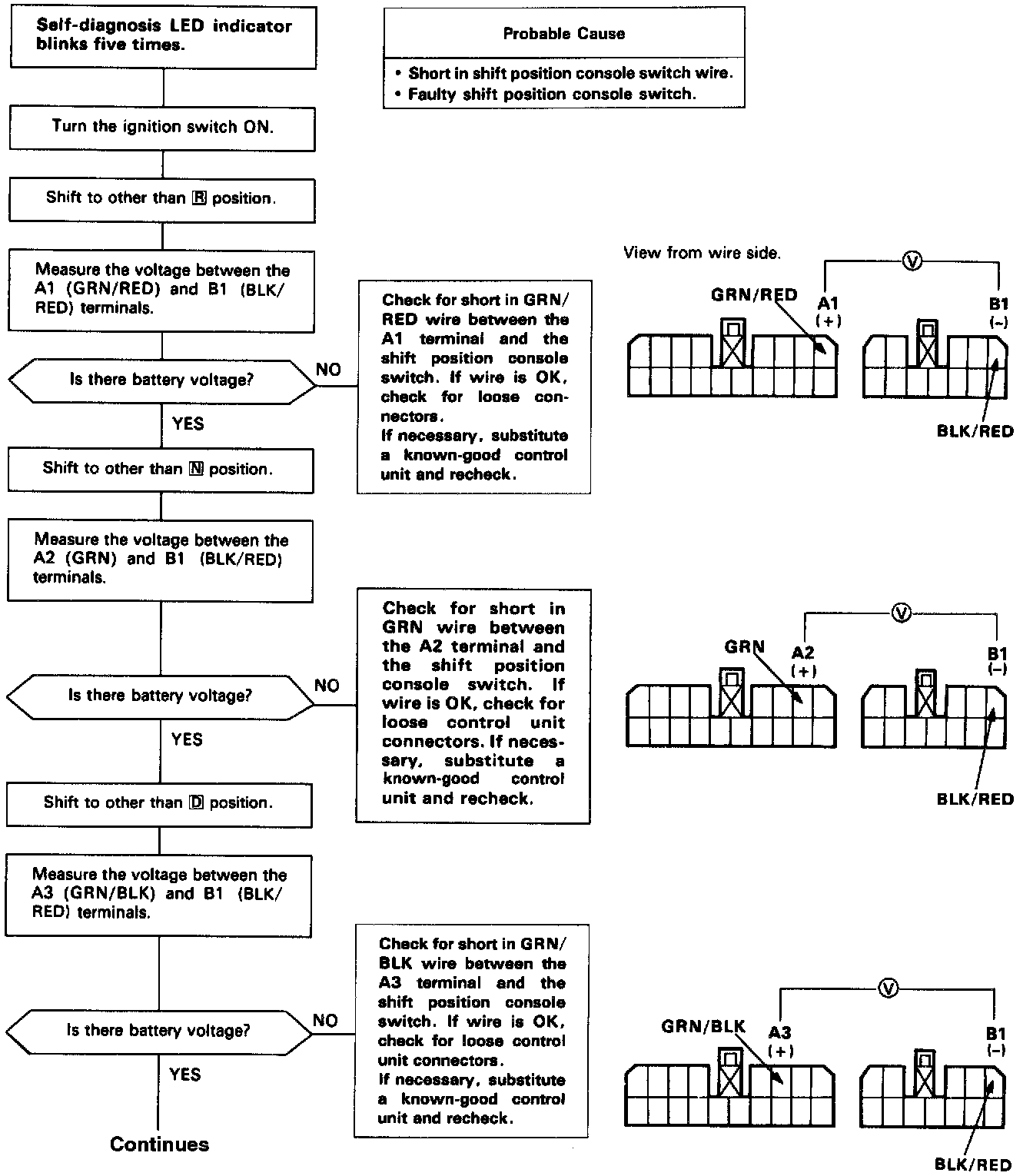 LED blinks five times: Inspection of Shift Position Console Switch circuit