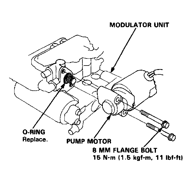 Note: After installing the modulator unit, add fresh brake fluid until the reservoir is refilled to the specified level, and bleed air from the system.