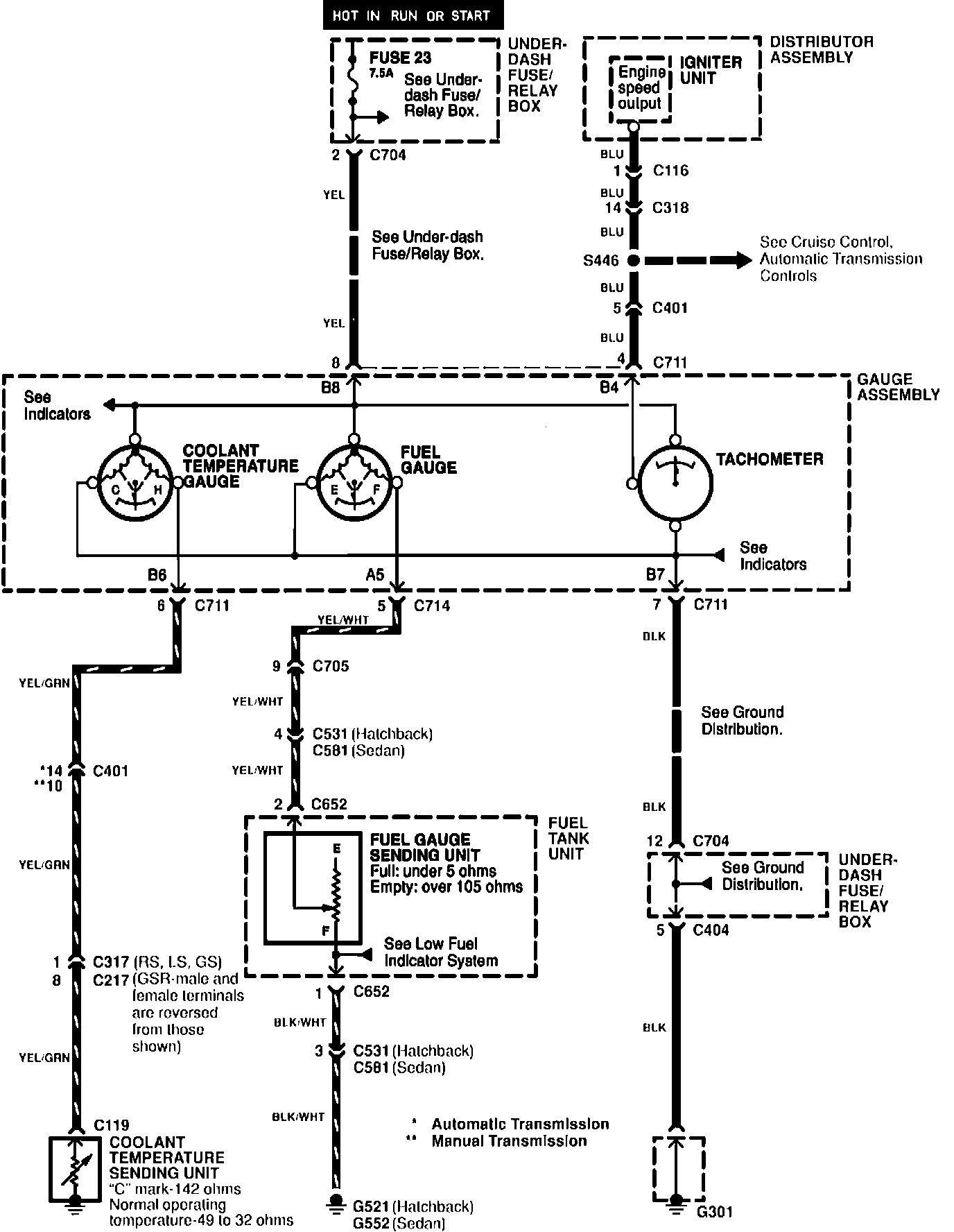 Gauges: Coolant Temperature Gauge, Fuel Gauge, And Tachometer: