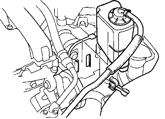 4. Remove the A/C hose stay and the radiator upper mounting bracket.