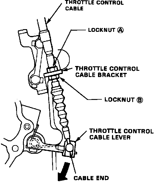 1. Loosen locknuts on throttle control cable, Fig. 8.