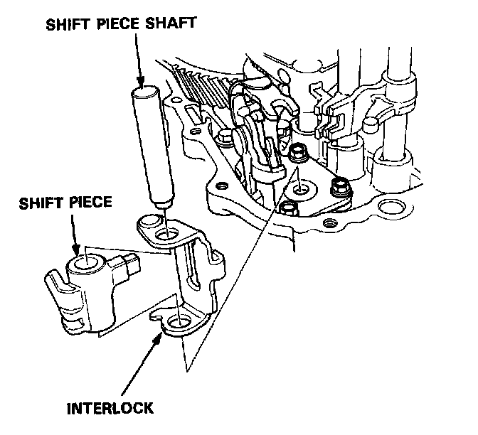 Remove the shift piece shaft, then remove the shift piece and interlock.