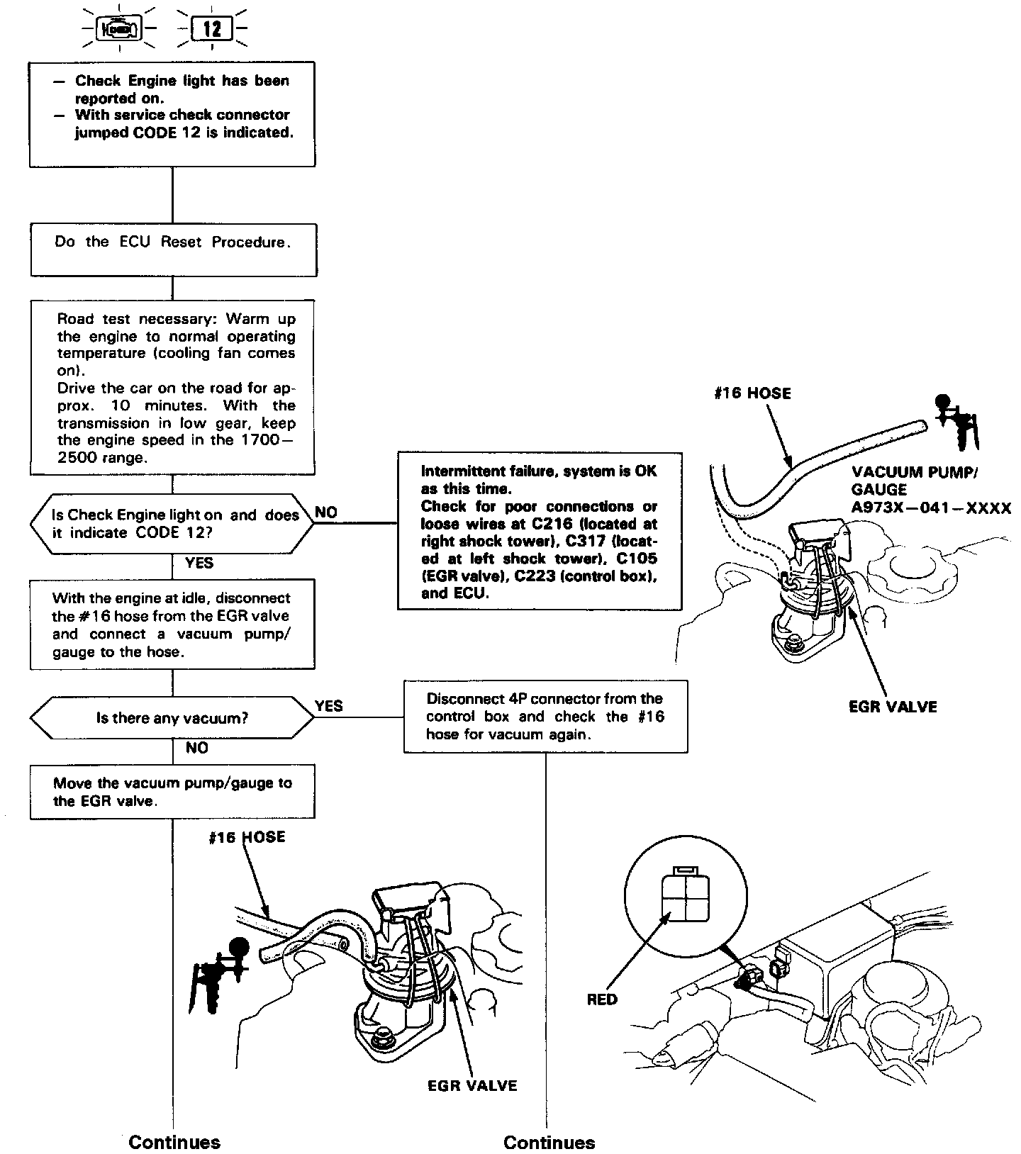 Self diagnosis Check Engine light indicates code 12: A problem in the Exhaust Gas Recirculation (EGR) system.