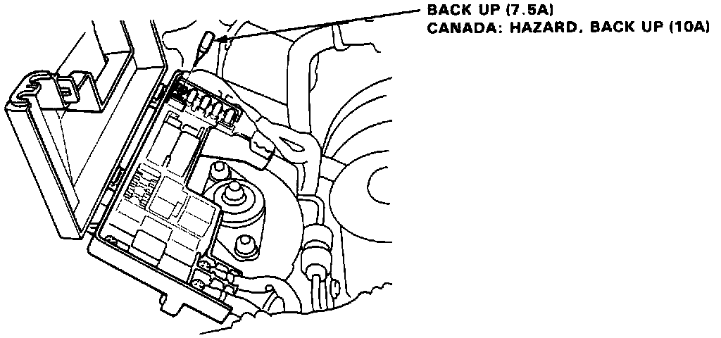 CANADA: Remove the HAZARD, BACK UP fuse (10A) from the under-hood fuse box for 10 seconds to reset ECU.